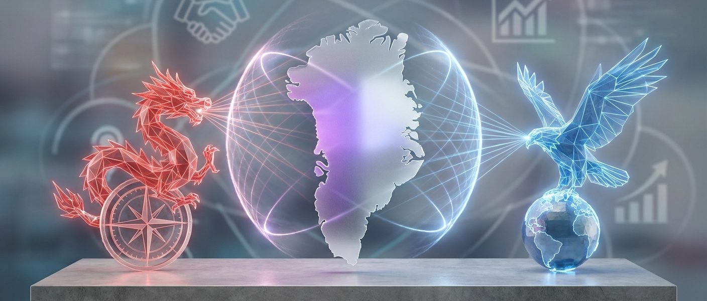 Grønlands position mellem Kina og USA intensiveres af sjældne jordarter, militærstrategiske interesser og klimaforandringer. USA udvider Thulebasen, mens Kina investerer i mineprojekter og infrastruktur. Grønlænderne navigerer mellem økonomisk udvikling og risikoen for at miste kontrollen over deres egen fremtid. Selvstyre og international anerkendelse bliver afgørende værktøjer i kampen for at forblive fri.